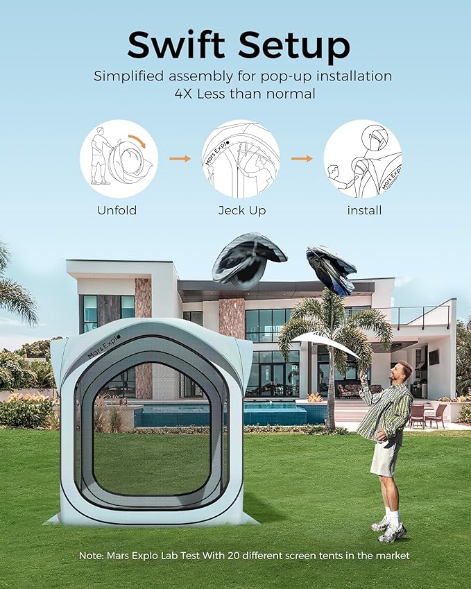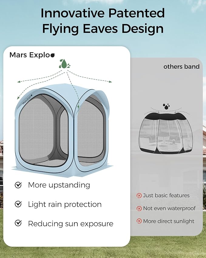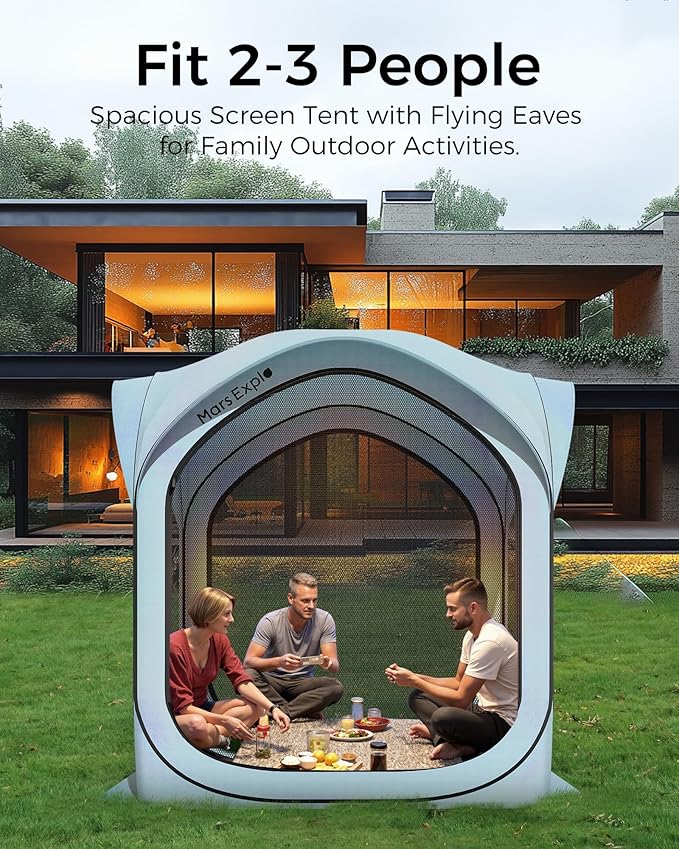 • Versatile & Comfortable Outdoor Experience: Perfect for various outdoor settings, this screen tent is great for relaxing in the backyard, hosting outdoor parties, or camping. It includes a hook for hanging lamps, allowing for extended use into the evening. The breathable design ensures comfort, while the mesh doors provide easy access and extra ventilation.