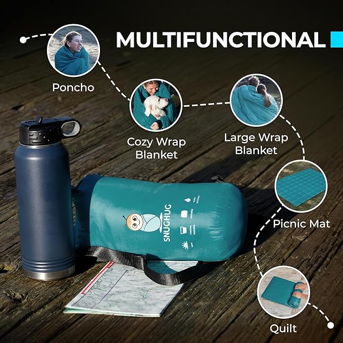 • Multi-Use Versatility - This camping quilt can easily convert into a hands-free poncho, keeping you warm while you cook, read, or relax. Use it as a campfire wrap, picnic mat, car emergency blanket, or travel comforter.