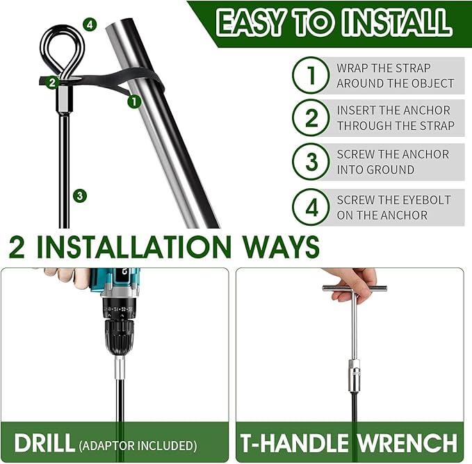 • 【CONVENIENT SET 】16 pcs anchors, with 16 straps, 1 adaptor, and a T hook, it will make it super easy and convenient for you, ideal for home or outdoor use.
