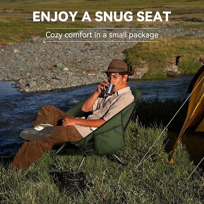 • Travel-Friendly: Weighing just 2.8 lbs, our camping chair folds down to a 14.9" x 6.3" size, making it effortlessly portable. Its compact design slips into most bags, perfect for hiking and outdoors