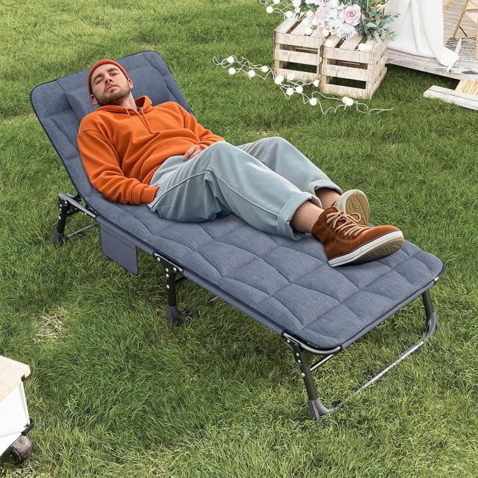 • Adjustable Pillow & 4-Position Reclining: "Customize Your Comfort Level" Enjoy personalized support with a detachable cloud-like pillow and 4-angle backrest positions - perfect for reading, stargazing, or napping in your camping cot