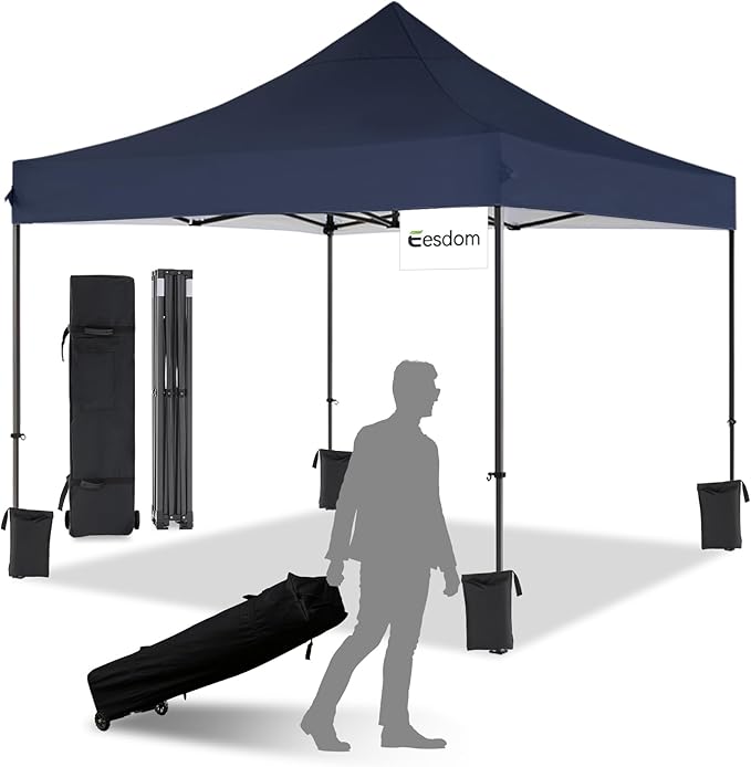 • Enhanced Heavy-Duty Canopy Frame: The Eesdom 10x10 pop up canopy features a commercial-grade full truss design for maximum durability and rust resistance. The upgraded top bracket with a 32° tilt angle ensures a taut canopy cover, preventing water pooling. Thickened 33mm steel tubes with 0.7mm wall thickness provide superior strength