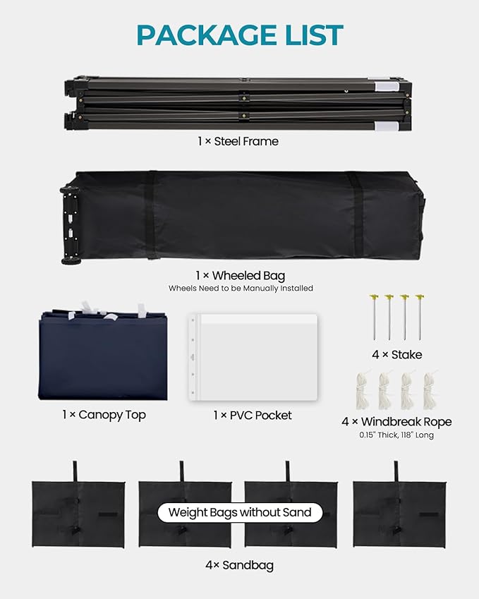 • Convenient Wheeled Carry Bag: We provide a roller bag with large wheels, which is easy to store the canopy tent again after used. Upgraded strong wheels and reinforced handle for fast movement and transportation. Ideal tents for parties, arties, weddings, markets, sports events, and other outdoor/commercial uses
