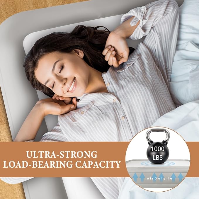 • 【1000LBS Capacity & Military-Grade Support 】: The interior of the twin air bed uses drawing process to greatly enhance support, internal structure is made of thousands of high-strength polyester fibers. This allows the air mattress to maintain its shape for a long time without frequent air additions, with a load-bearing capacity of up to 1200 LBS.
