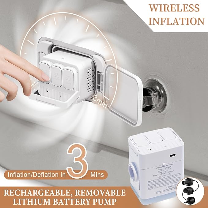 • 【60W Fast-Charging Pump with Emergency Light】: This twin - size air mattress comes with a 60W, 2500mAh lithium - battery pump. The pump offers wireless inflation and deflation, and its three nozzles allow it to inflate various items. Ideal for camping, beach trips, and other outdoor adventures, it also doubles as an emergency light.