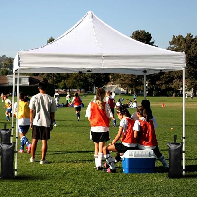 • 【EASY TO FILL & REUSE】 The canopy tent weights feature sturdy built-in handles, making them easy to carry, fill, and install. Simply fill with sand, rocks, gravel and bottled water, then attach to your canopy legs for quick setup and takedown. They can be reused for future events.