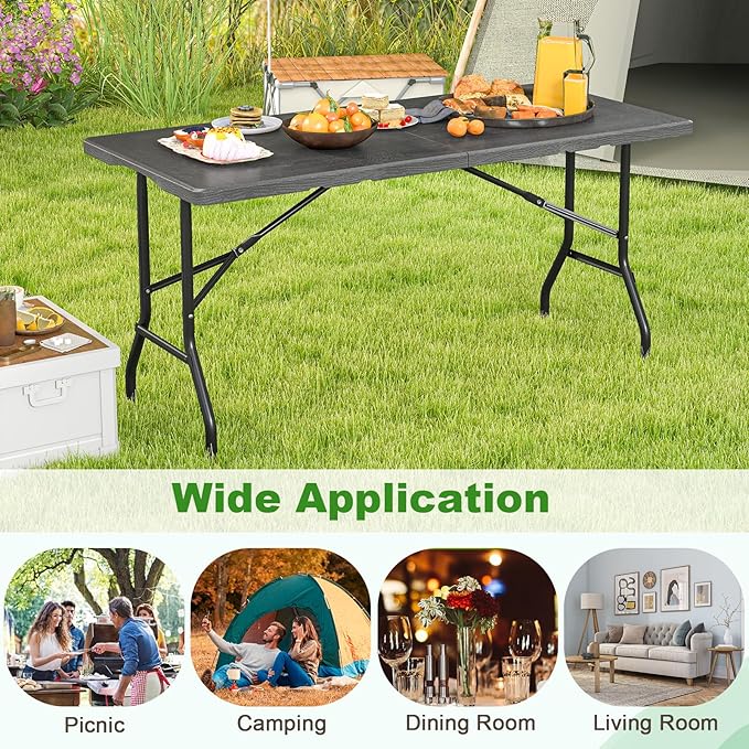 • Large Capacity & Wide Application: The spacious 60" x 27.5" tabletop accommodates up to 4-6 individuals for dining or activities, making it perfect for indoor and outdoor usage. The foldable table is perfect for the living room, dining room, picnic and camping.