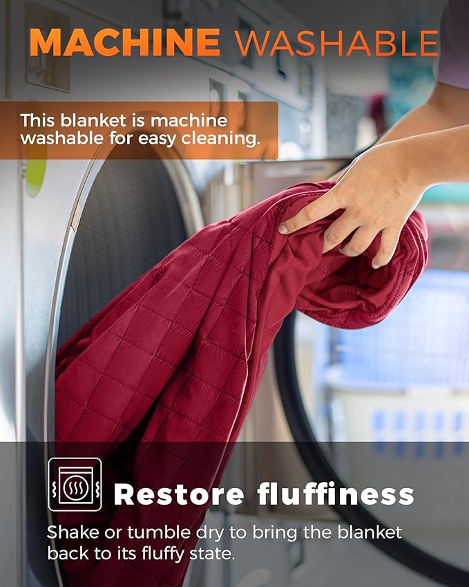 • MULTI-USE FOR ANY OCCASION — OUTDOOR, INDOOR COMFORT WITH PRACTICAL DETAILS: More than just a camping blanket, it works as a picnic mat, shawl, travel pillow, or emergency sleeping bag. Whether you're camping, watching outdoor movies, or relaxing at home, it’s your go-to gear for year-round comfort. The smooth, tightly woven fabric resists pet hair and is machine washable—easy to maintain, even in homes with pets. Lightweight and packable, it's a versatile choice for everyday use and travel.