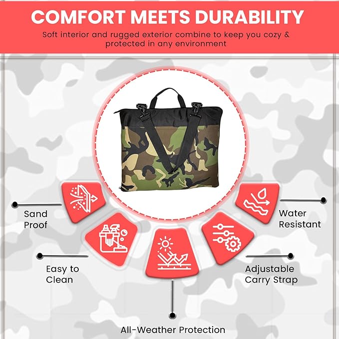 • Comfortable & Easy to Carry: This camo outdoor blanket is lightweight and includes a removable, adjustable strap for easy carrying. Whether you're heading to the beach, campground, or park, you can pack it up quickly and take it anywhere without adding bulk to your load. Perfect as a travel blanket, camping blanket, or portable blanket, it combines convenience and comfort.