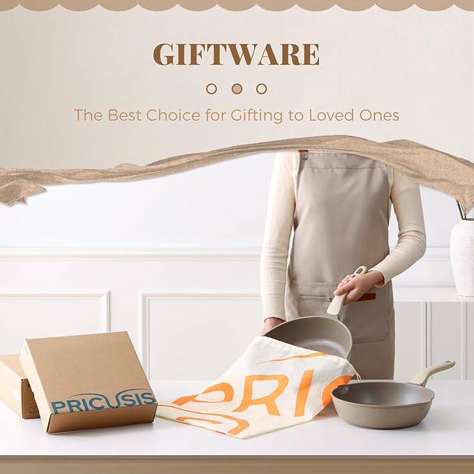 PRICUSIS Nonstick Frying Pan with Lid, Healthy Skillet, Egg Pan Nonstick Omelet Pan Chef's Pan, PFOA & PTFE Free, Induction Compatible (8Inch W/L Natural Linen)