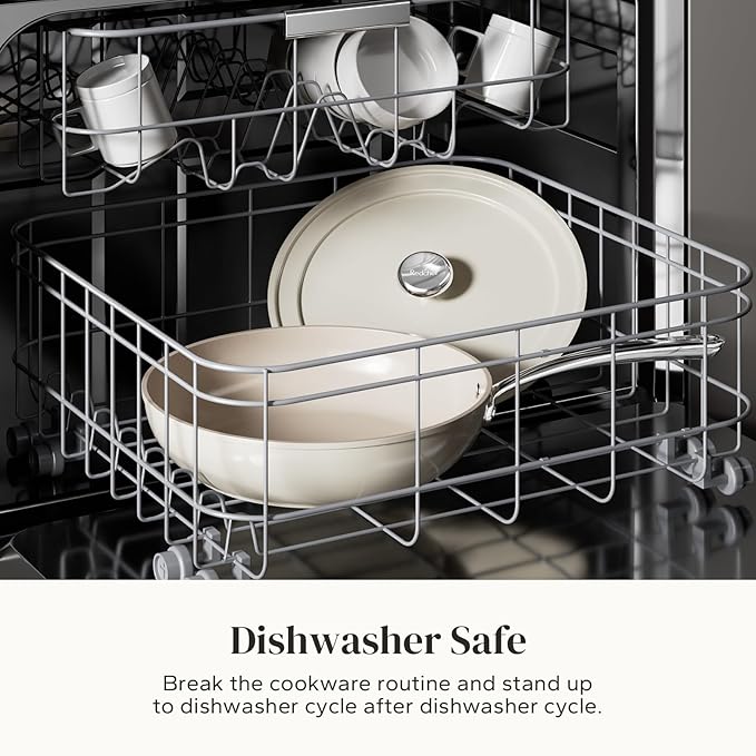 Redchef Ceramic Deep Saute Pan with Lid, Large Jumbo Cooker 3.5QT, 11" Frying Pan Nonstick with Stay Cool Handle, Non Toxic Cooking Skillet, Kitchen, Induction Dishwasher Safe, PFOA & PFAS Free(Beige)