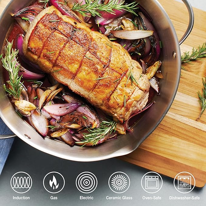 • Transparent Glass Lid & Comfortable Grip Handles: The clear glass lid locks in moisture and flavor while allowing you to monitor cooking progress easily. The securely riveted, ergonomic stainless steel handles provide a comfortable, firm grip for safe and confident handling.