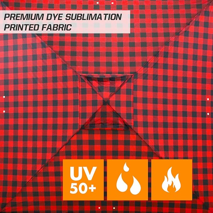 EAGLE PEAK Pop Up Canopy Tent with Wheeled Carry Bag, 8 Stakes, 4 Ropes, 4 Weight Bags, Easy Set Up Tent Canopy, 10x10 ft, 100sqft of Shade, Red Plaid