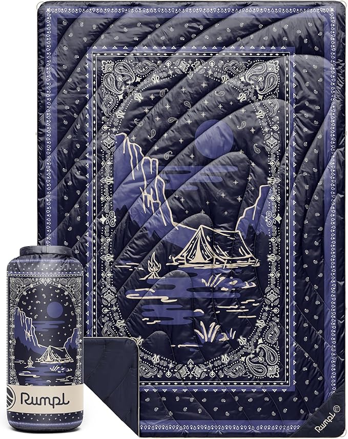 Rumpl Original Puffy Blanket - Warm, Water-Resistant Camping Blanket with 100% Recycled Synthetic Insulation, 52"x75", Original Puffy V2, Midnight Mesa Bandana