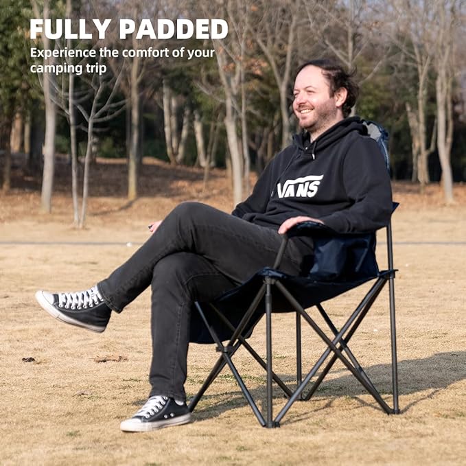 • 【All-Terrain Versatility】Durable folding chairs for the beach and uneven terrain. Non-slip rubber feet with ground stakes work on sand, grass, and concrete. Best camping chair for big and tall adults, perfect for camping, beach, tailgating, fishing, backyard