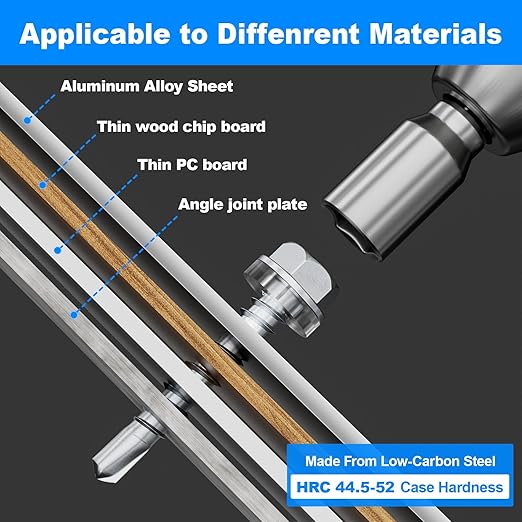 • [Sheet Metal&Self-Tapping Design] The Self-tapping Sheet Metal screws can easily penetrate wood, metal or other hard materials, suitable for iron roof door track steel frame structure iron fence hurricane panel gutter guard steel pipe and so on, known for its efficient application performance Known for its durability.