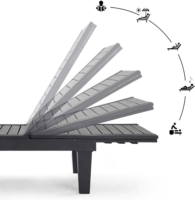 • 5 Position Lounge Chair: With 5 adjustable positions, finding your ideal comfort level on our outdoor chaise lounge chair is a breeze—it even reclines fully flat for afternoon naps.