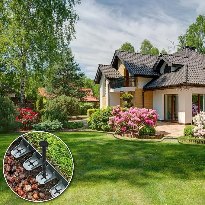 • Easy Intallation: Tap the landscape stakes into the ground effortlessly using a rubber mallet or regular mallet. For hard ground, water the area to soften it, preventing edging spikes breakage (Recommending larger packs is more cost-effective)
