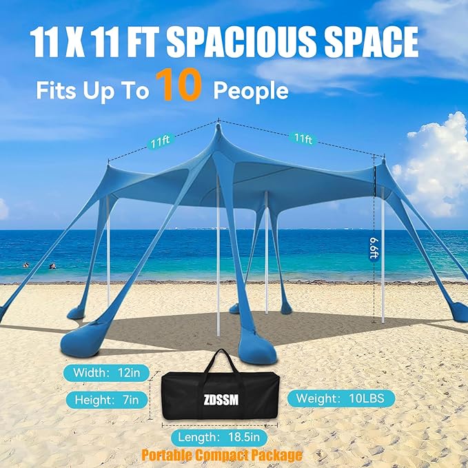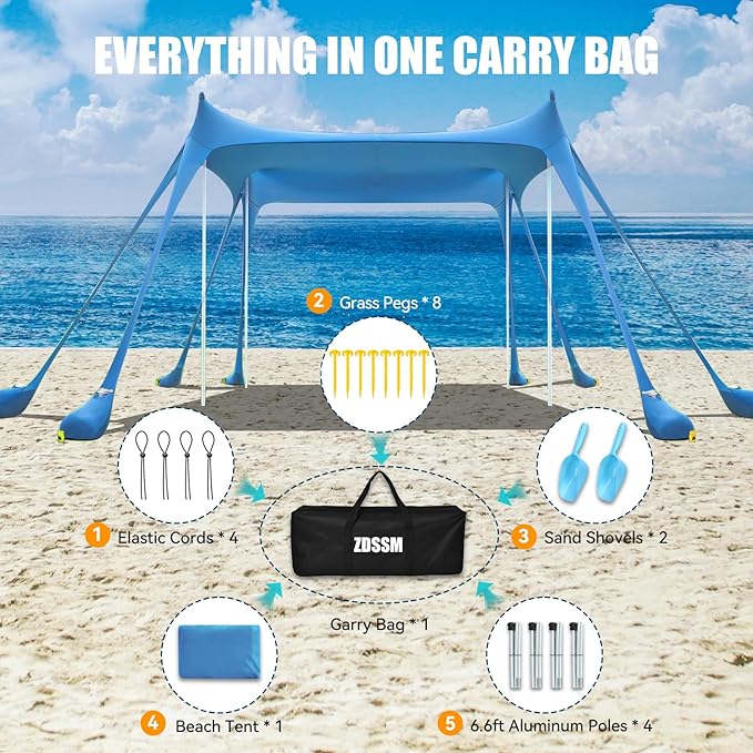 • Superior UV Protection: Equipped with a UV-protective canopy, our beach shelter blocks harmful rays, keeping you cool and safe under the sun. Ideal for beachgoers looking for a reliable sunshade for beach days