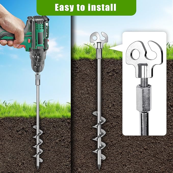 • 【Versatile Use】Perfect for securing trampolines, tents, sheds, carports, swing sets, dog leashes, garden trellises, and more. Stays secure in all types of soil, including hard, rocky, frozen, sandy, and gravelly soils.