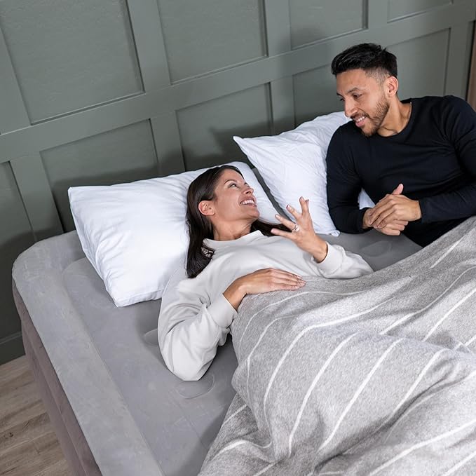 • STAYS INFLATED ALL NIGHT LONG: The advanced AlwayzAire built-in pump inflates the airbed in 4 to 5 minutes and automatically adjusts air pressure, silently reinflating as needed to maintain the desired firmness without any manual effort; Features USB-A & USB-C ports to charge devices while you sleep, so you (and your devices!) wake up refreshed and recharged