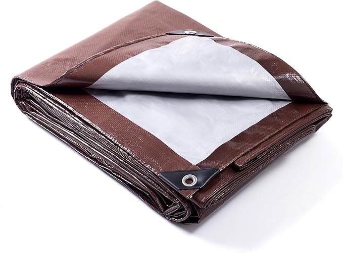 GUARD SHIELD Tarp 8x10 Feet Waterproof Brown/Silver Tarps 8Mil Multi Purpose UV Resistant Cover for Outdoor,Camping,Tent,Boats