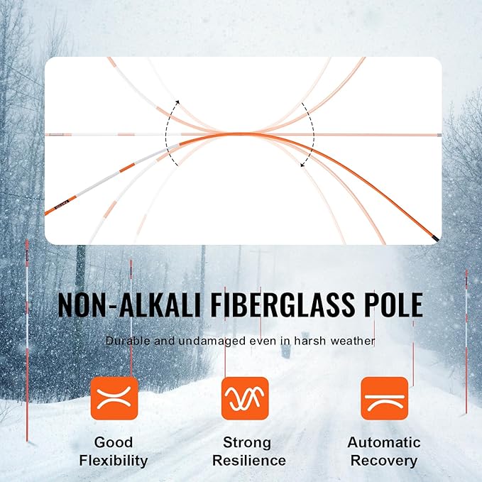 • High-Quality Material: The orange driveway stakes are made from non-alkali fiberglass, making them lightweight and strong with greater flexibility. They can withstand heavy snow and quickly rebound to their original shape, ensuring long-term use even in rainy and snowy conditions.