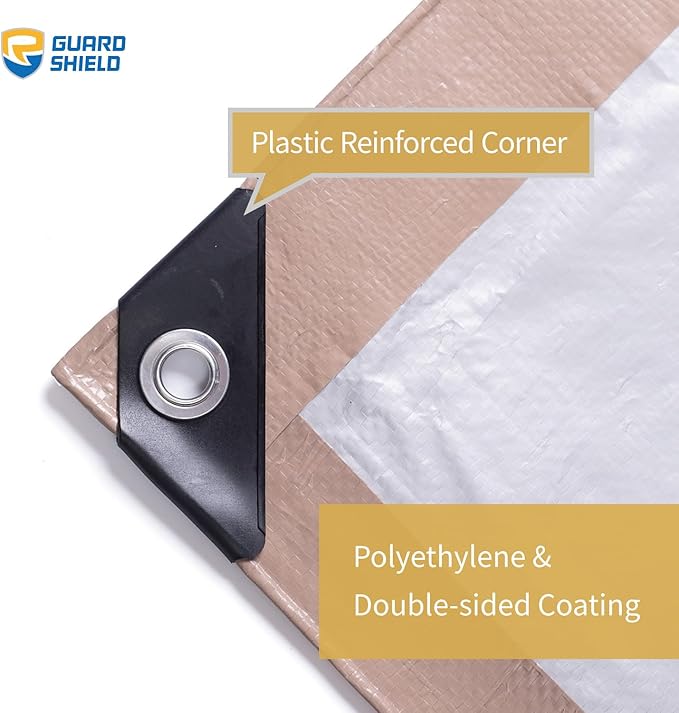 GUARD SHIELD Tarp 10x10 Feet Waterproof Tan/Silver Tarps 8Mil Multi Purpose UV Resistant Cover for Outdoor,Camping,Tent,Boats