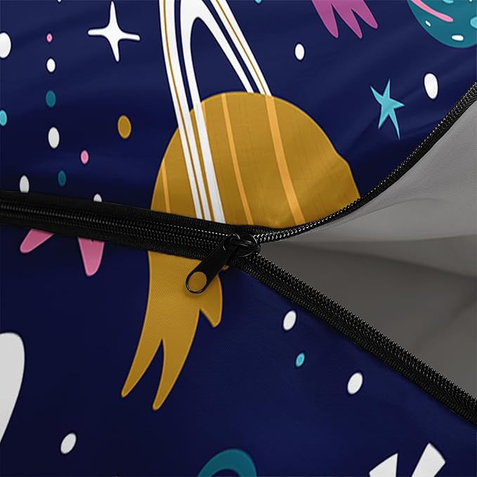 • Explore the Cosmos in Style: This Galaxy Sleeping Bag features a mesmerizing starry night design, perfect for little stargazers and space enthusiasts. Let your child’s imagination soar as they drift off to sleep under a blanket of stars