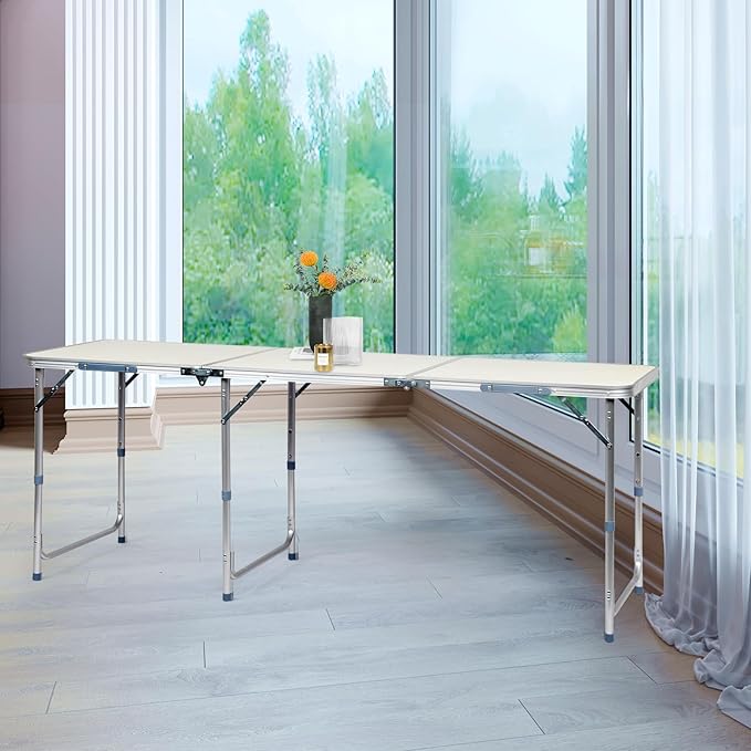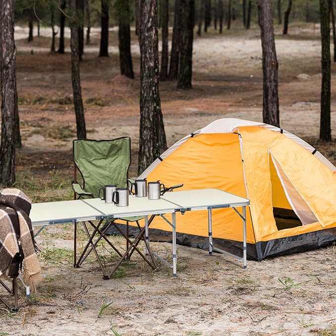 • 【Portable Folding】 The folding design makes the table easy to store and carry, it is suitable for camping, travel and other outdoor activities,so it is an ideal choice for outdoor lovers. The camping table measures 71 inches (L) x 23.8 inches (W) when unfolded, and shrinks to 23.8 inches (L) x 3.7 inches (W) x 23.8 inches (H) when folded