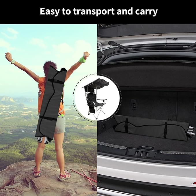 Portable Camping Chair with Canopy Shade- Folding Camping Lounge Chair with Cup Holder & Side Pocket for Outdoor Camping, Fishing, Beach - Support 330 LBS (Black)