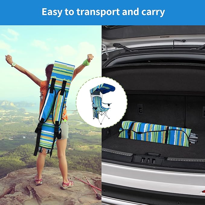 • Portable & Lightweight Design: This camping chair with canopy is easy to fold and carry, making it perfect for camping, beach trips, or outdoor events. Its compact design ensures hassle-free transportation and storage.