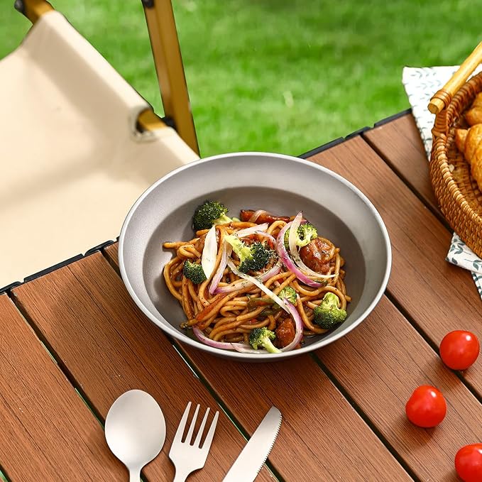 • Compact design:These pure titanium bowls are smooth circles with a top diameter of 7.2 inches, a height of 1.89 inches, and a weight of 2.89 ounces. They are lightweight, stackable, and do not take up too much space.
