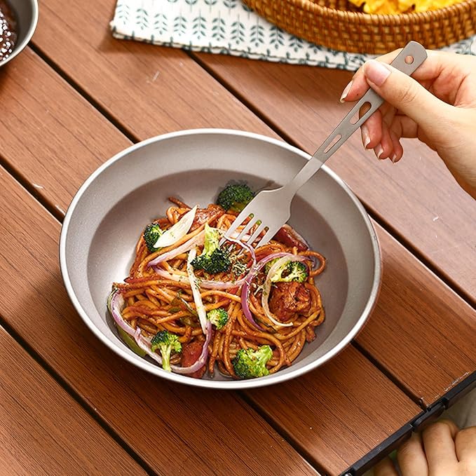 • Easy to clean:The pure titanium bowl is easy to clean and can be washed in a dishwasher. High quality titanium material is not easily reactive with food and has no residual metallic flavor. After use, it can be hand washed or washed in the dishwasher, which is very convenient and saves you more time.