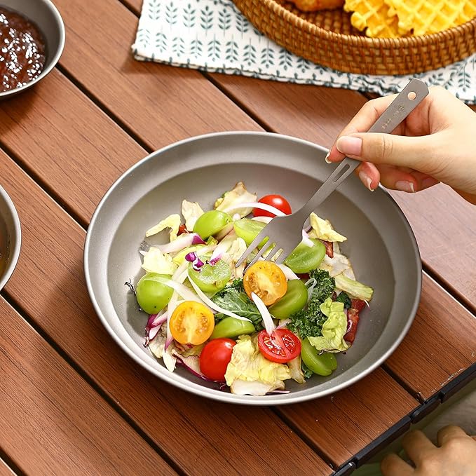 • Compact design:These pure titanium plate is smooth circles with a top diameter of 8.27 inches, a height of 1.5 inches, and a weight of 3.6 ounces. They are lightweight, stackable, and do not take up too much space.