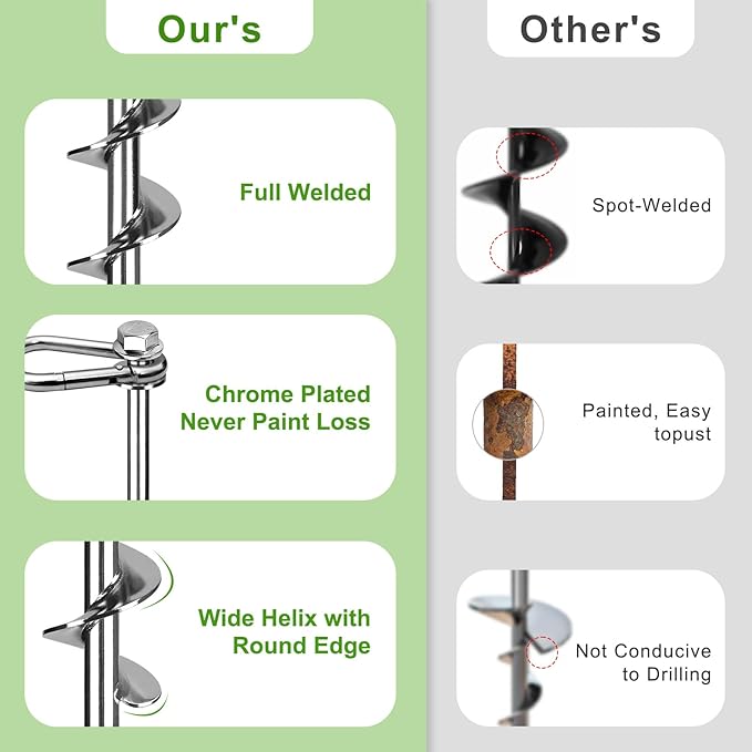 • 【Heavy Duty Construction】Our ground anchors are made from 2/5" diameter high-quality solid steel with welded 3/5" wide spiral blades, providing ultimate strength and durability.