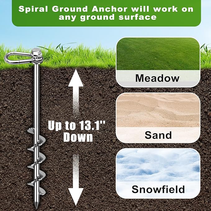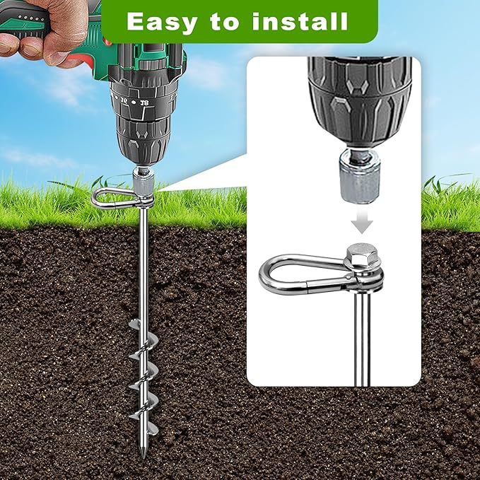 • 【Versatile Use】Perfect for securing trampolines, tents, sheds, carports, swing sets, dog leashes, garden trellises, and more. Stays secure in all types of soil, including hard, rocky, frozen, sandy, and gravelly soils.