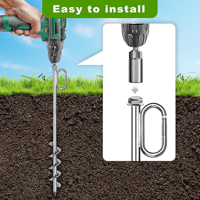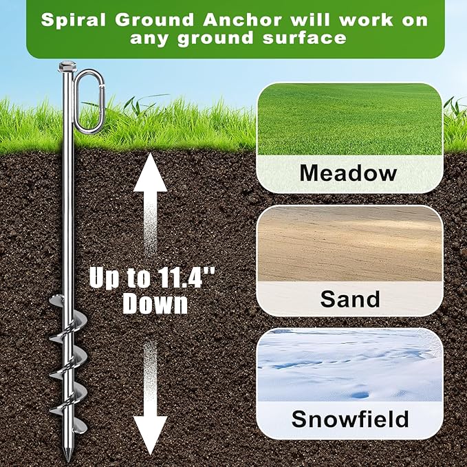• 【Versatile Use】Perfect for securing trampolines, tents, sheds, carports, swing sets, dog leashes, garden trellises, and more. Stays secure in all types of soil, including hard, rocky, frozen, sandy, and gravelly soils.