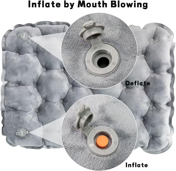• Lightweight and Size: Weights approximately 0.29lb. Size 42*33cm. It quickly deflates and folds into a compact size, more comfortable travel without compromising comfort. Weight capacity 330 lbs. The interior adopts an electric welding pattern forming multiple air support lattices with multiple support points to evenly distribute pressure.
