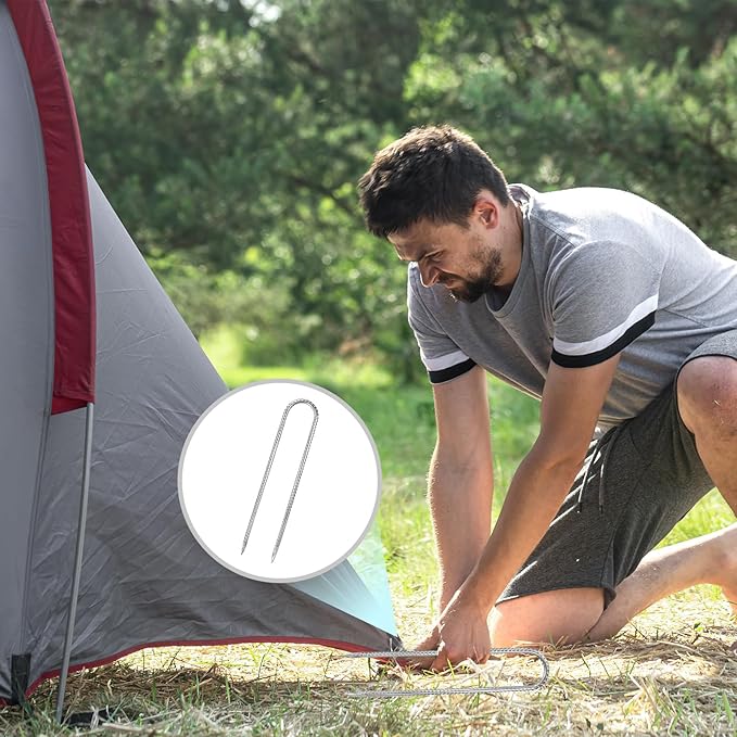 • [Durable Steel Stakes] - Our u-hook stakes are made of high-strength steel, not easy to bend or break, and suitable for a variety of terrain, in rock and hard soil, they can also be used, as a good fixing tool for outdoor camping, and yard landscape installation