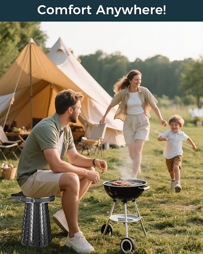 • 2025 Upgraded XXL Collapsible Stool:19.7" tall, extra-wide seat—bigger, comfier than standard folding stools. Great camping stool or portable seat for adults