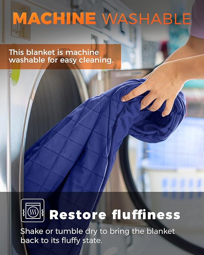KingCamp Ultralight Camping Blanket, Packable Down Alternative Puffy Wearable Blankets Weatherproof Warm Package Quilt with Snap Buttons for Outdoor Hiking Travel Picnic Stadium (69" L x 53" W, Navy)