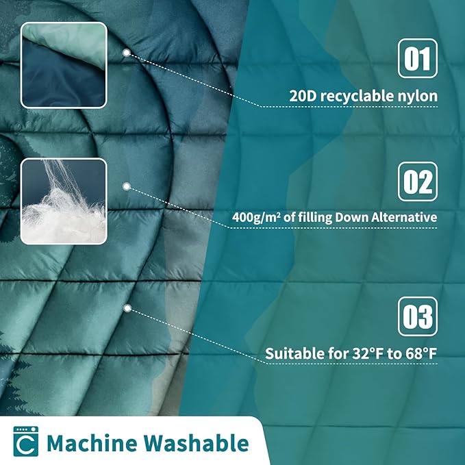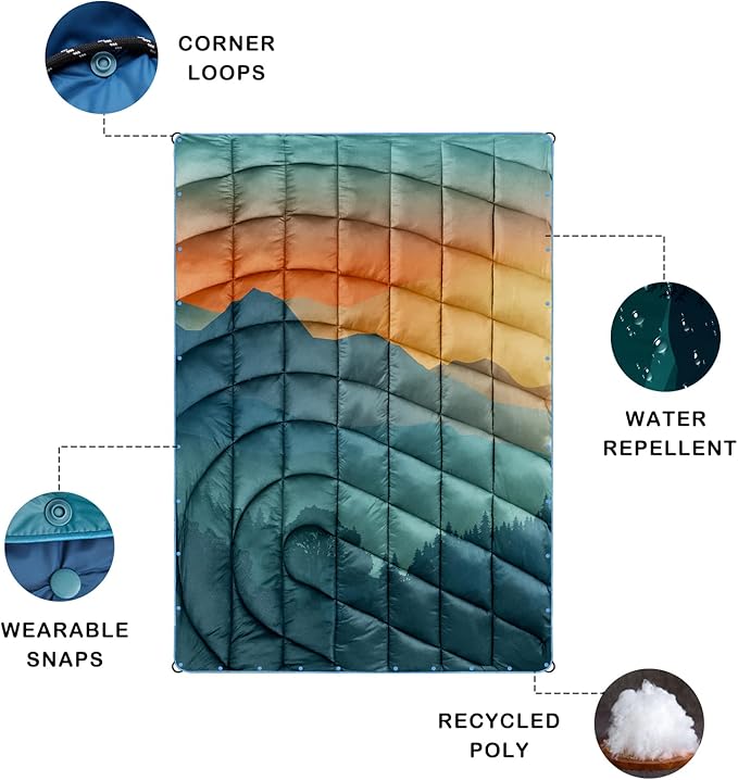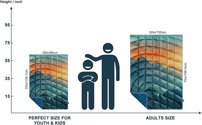 • LIGHTWEIGHT AND PACKABLE: The camping blanket measures 39*55 inches and measures 6*12 inches when packed. Weighing only 1.8 pounds, the products you buy include a camping blanket and a portable storage bag. This will be the ideal blanket for your outdoor, hiking and camping adventures.