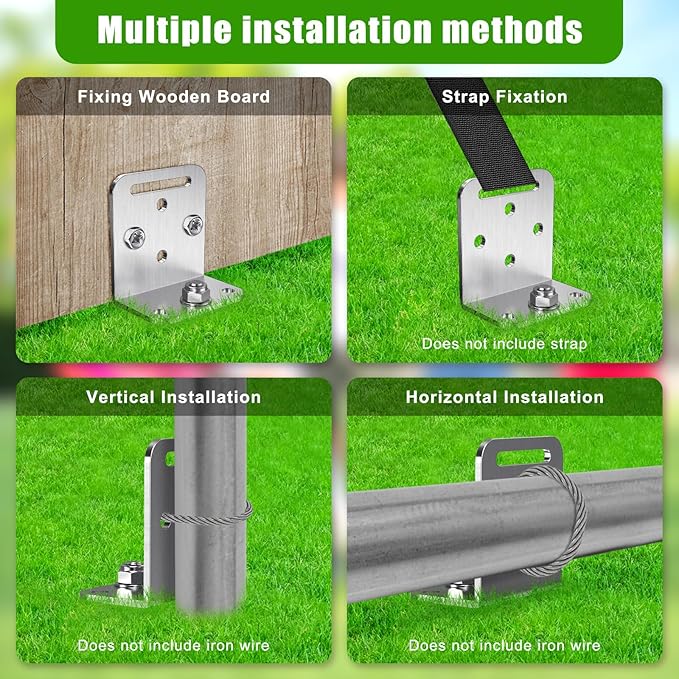• Versatile L-shaped Bracket: The earth anchor's L-bracket offers 4 installation methods: fixing wooden board, horizontal, vertical, There is a hole on the top of the L-bracket for strap fixation, adding flexibility.