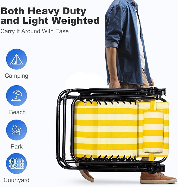 • PORTABLE DESIGN: Lightweight and foldable, our Lounge Chairs are easy to take with you on the go, whether you're heading to the beach, park, or your child's next sporting event.
