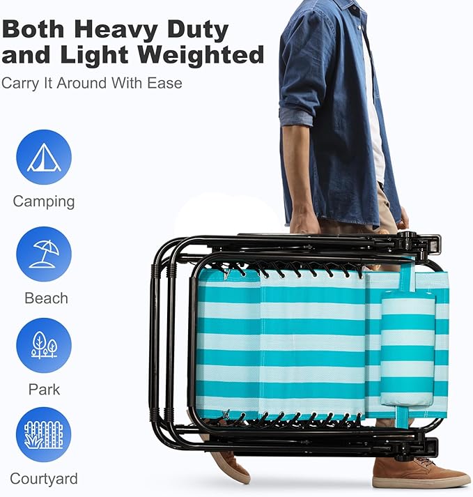 • PORTABLE DESIGN: Lightweight and foldable, our Lounge Chairs are easy to take with you on the go, whether you're heading to the beach, park, or your child's next sporting event.