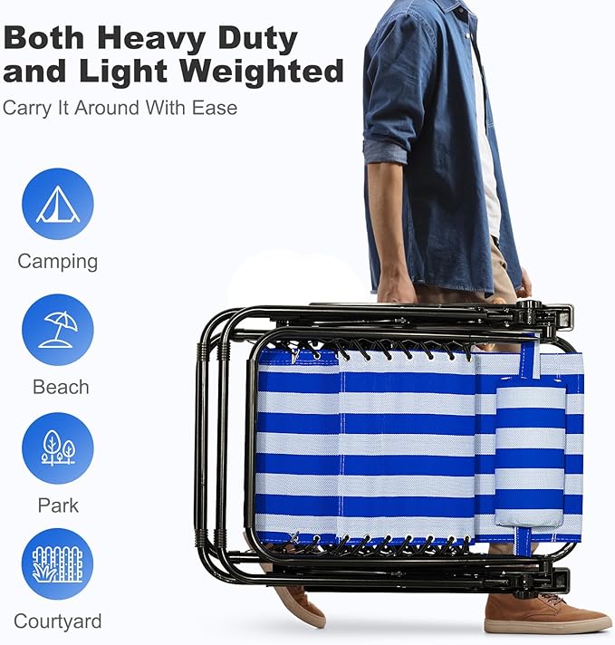 • PORTABLE DESIGN: Lightweight and foldable, our Lounge Chairs are easy to take with you on the go, whether you're heading to the beach, park, or your child's next sporting event.