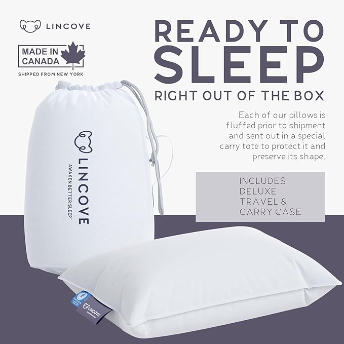 • READY TO SLEEP - Your new Lincove Microgel Canadian-made travel pillow comes ready to use in our luxury gift travel tote bag. If you pack it in your bag or luggage, it fluffs up in just seconds for instant comfort and travel convenience while on vacation, camping, traveling, or staying in hotels.