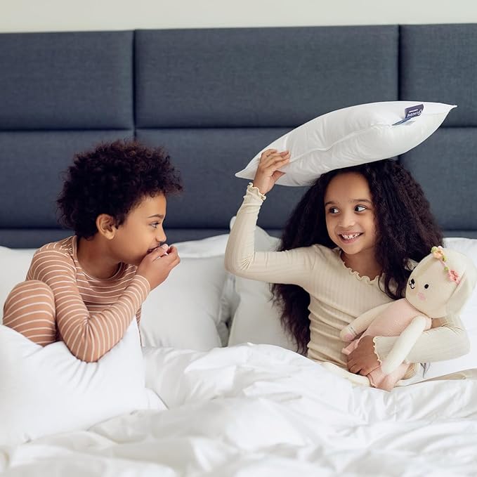 • PORTABLE TRAVEL ESSENTIAL – This microgel travel pillow is OEKO-TEX Certified and has a superior Down-like feel, making it just as plush and cozy as natural Down. It quickly fits into the tote travel carry bag, which can be packed or tied to your backpack or luggage for hands-free convenience while deboarding, getting in shuttles, or on trains and taxis.