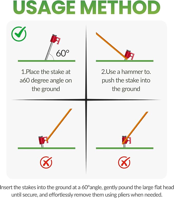 • Angled Installation Method Simple 60-degree angle insertion with hammer assistance ensures maximum holding power and wind resistance.